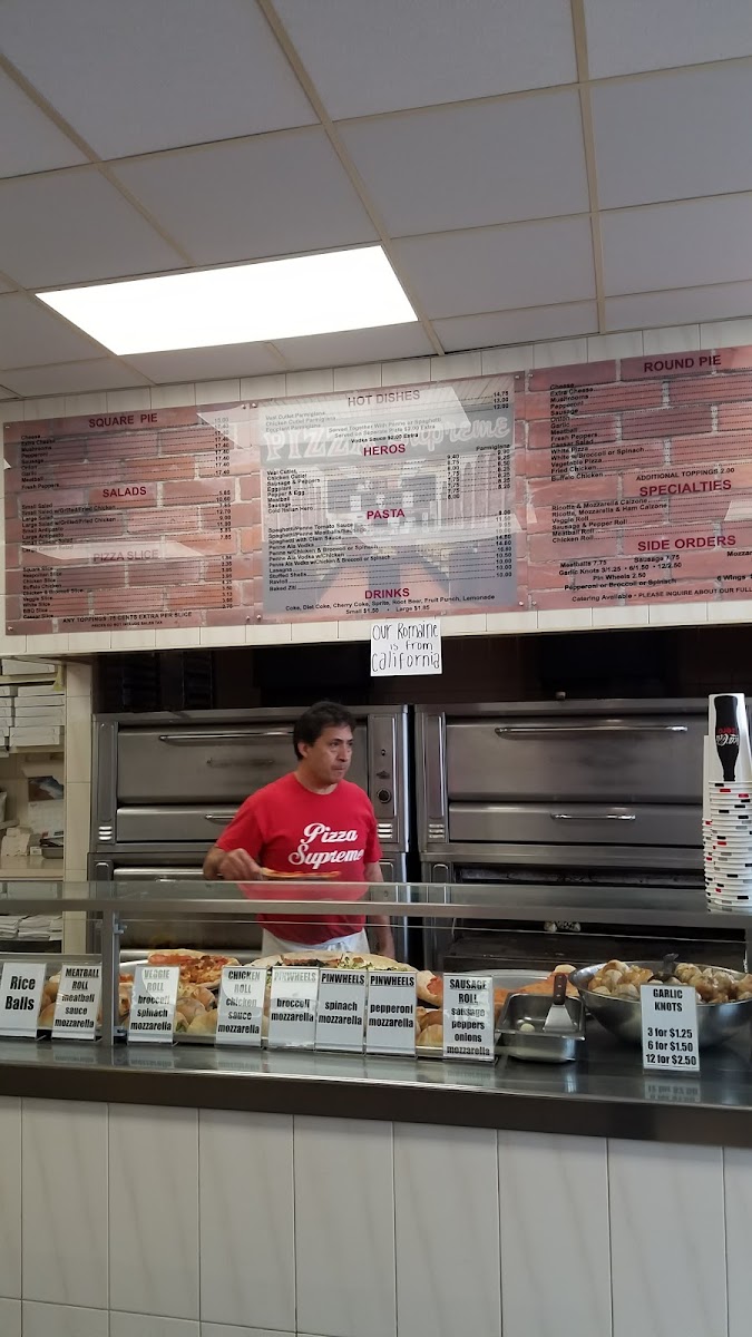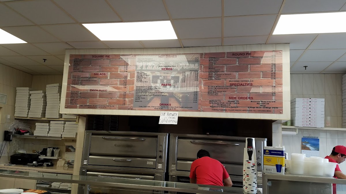 Generous mozzarella melted over a rich tomato sauce on a thick, square crust.